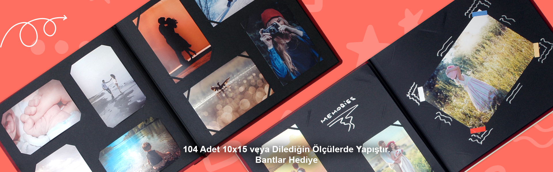 104 Adet 10x15 veya Sticker Bantlar İle Dilediğiniz Ölçüde Fotoğraf Yapıştırma Avantajı.Albüm Yanında verilen özel bantlar ile 20x25cm Ebadına Kadar Fotoğraf Baskısı yapıştırılabilmektedir. |