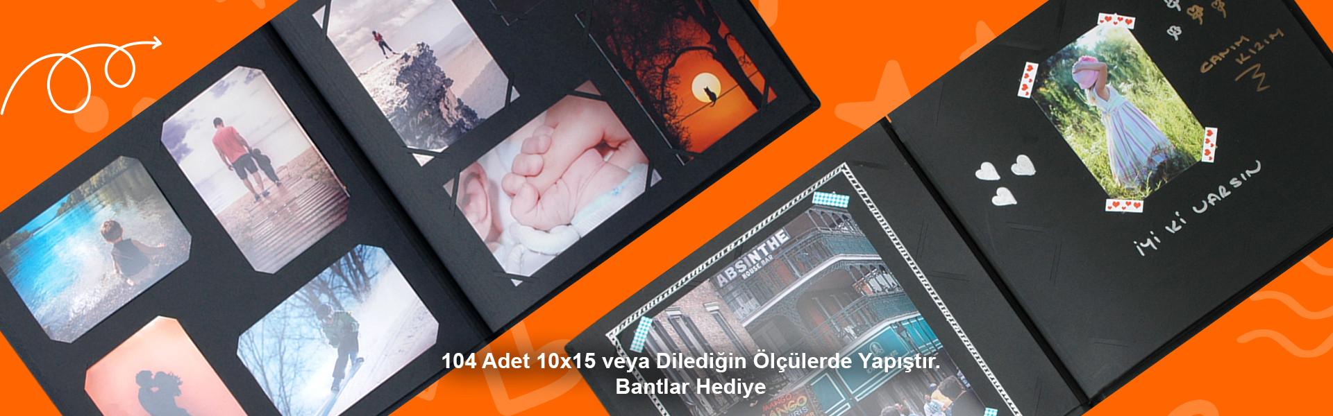 104 Adet 10x15 veya Sticker Bantlar İle Dilediğiniz Ölçüde Fotoğraf Yapıştırma Avantajı.Albüm Yanında verilen özel bantlar ile 20x25cm Ebadına Kadar Fotoğraf Baskısı yapıştırılabilmektedir. |